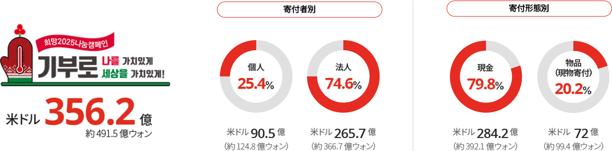 社会福祉共同募金会は、毎年ホリデーシーズンに年末募金キャンペーンを実施し、支援を必要とする人々を支えています。 12月1日から1月31日までの62日間、全国で展開される「希望寄付キャンペーン」は、隣人に温かさを届けます。